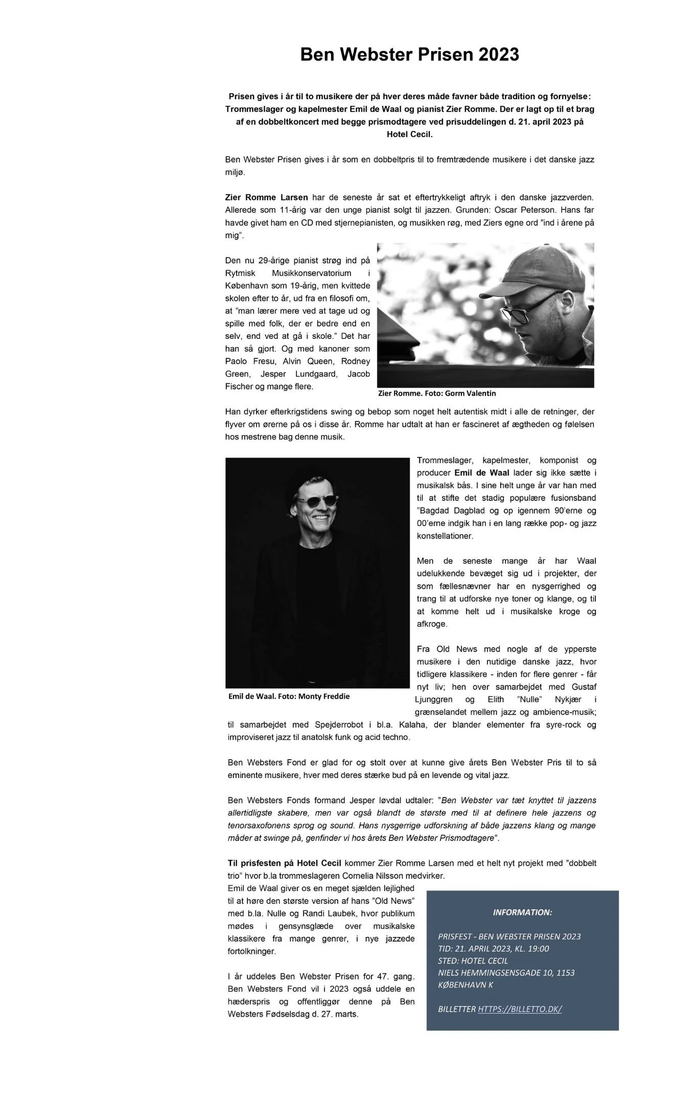About Concert in Denmark Ben Webster & Teddy Wilson (Gallery Style) Webster, Carter, Sweets, Meyer, Thilo (Gallery Style) Ben Webster with Strings (Gallery style) Musical Life In Memoriam 2024 In Memoriam 2025