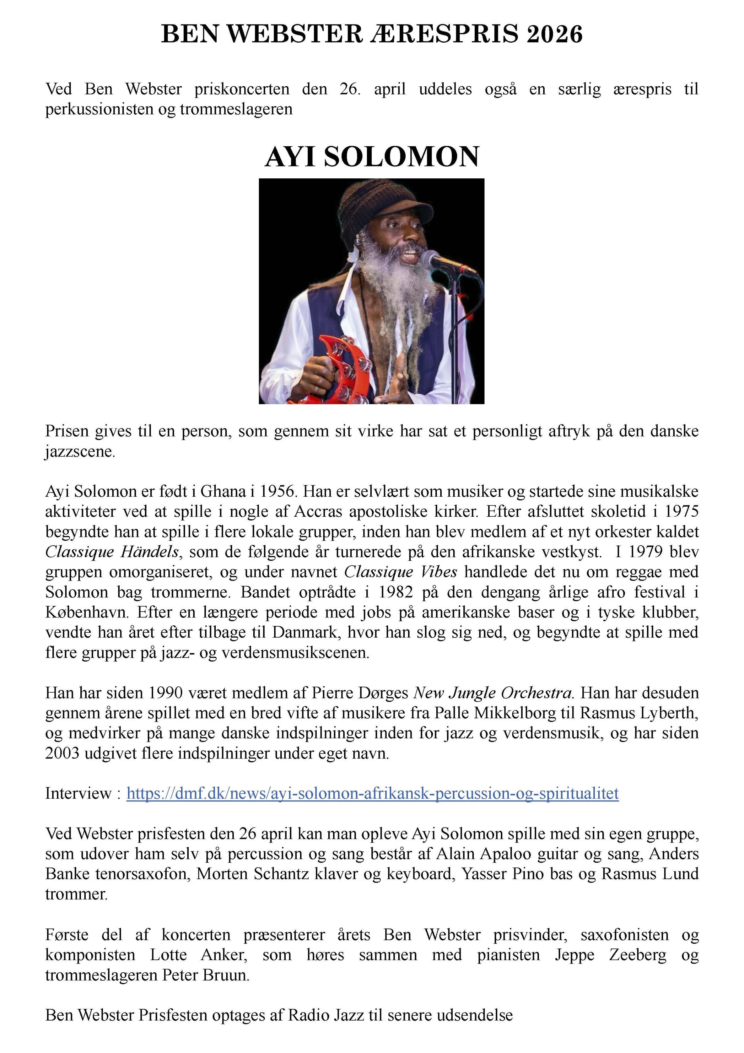 Ben Webster Ærespris 2026 --> Ayi Solomon Ben WebsterApril 6, 2026 Facebook0 Twitter Pinterest0 0 Likes