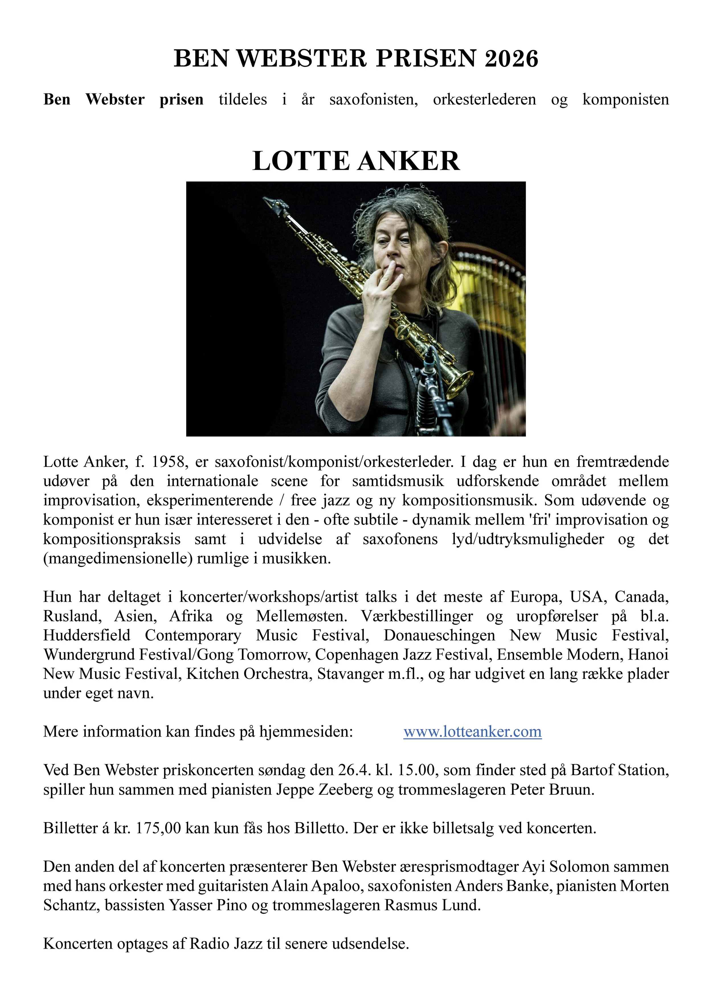 Ben Webster Ærespris 2026 --> Ayi Solomon